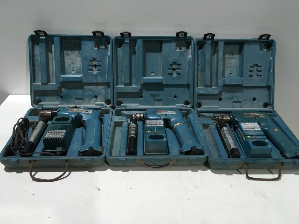- Pneumatic and cordless tools including Paslode nailers, Hilti and Dewalt drills, Bostitch staplers, and Ridgid vacs.