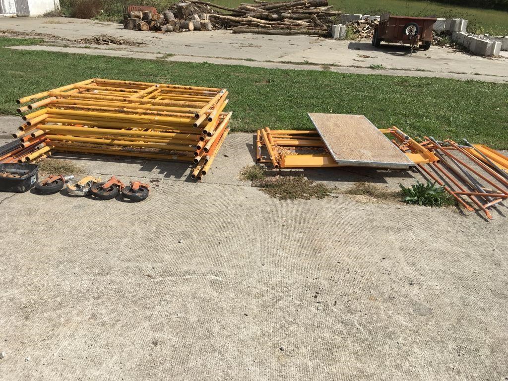 - Scaffolding sections, walk planks, drywall tools, clamps, bar clamps, air hoses, and extension cords.