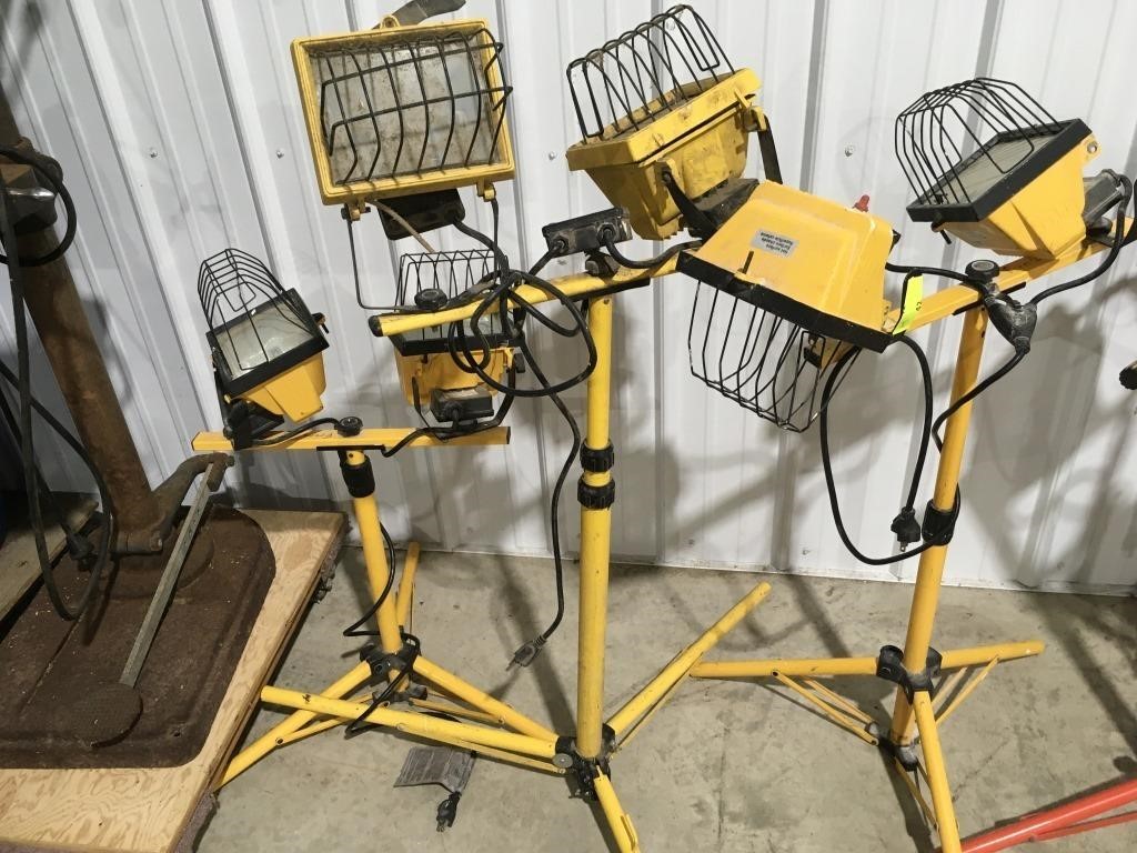 - Air compressors, heaters, shop vacs, cabinets, tarps, and hand tools.