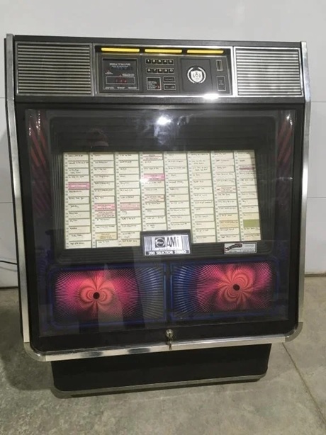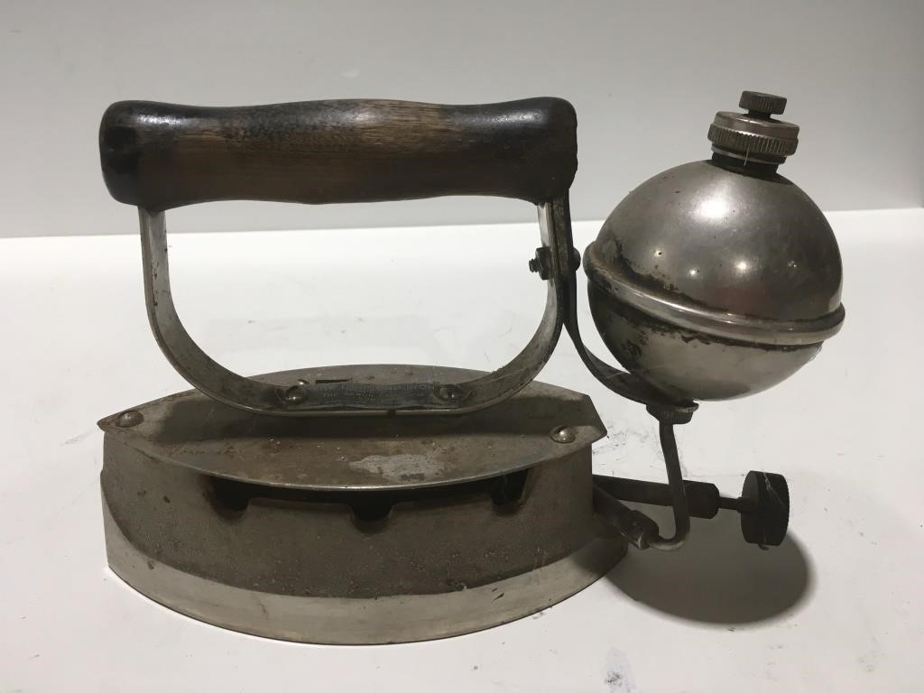 Rowe AMI jukebox, barrister bookcase, washstands, primitive cabinets, vintage irons, oil lamps, phonograph record player, and unique early household pieces. - Glassware & Pottery